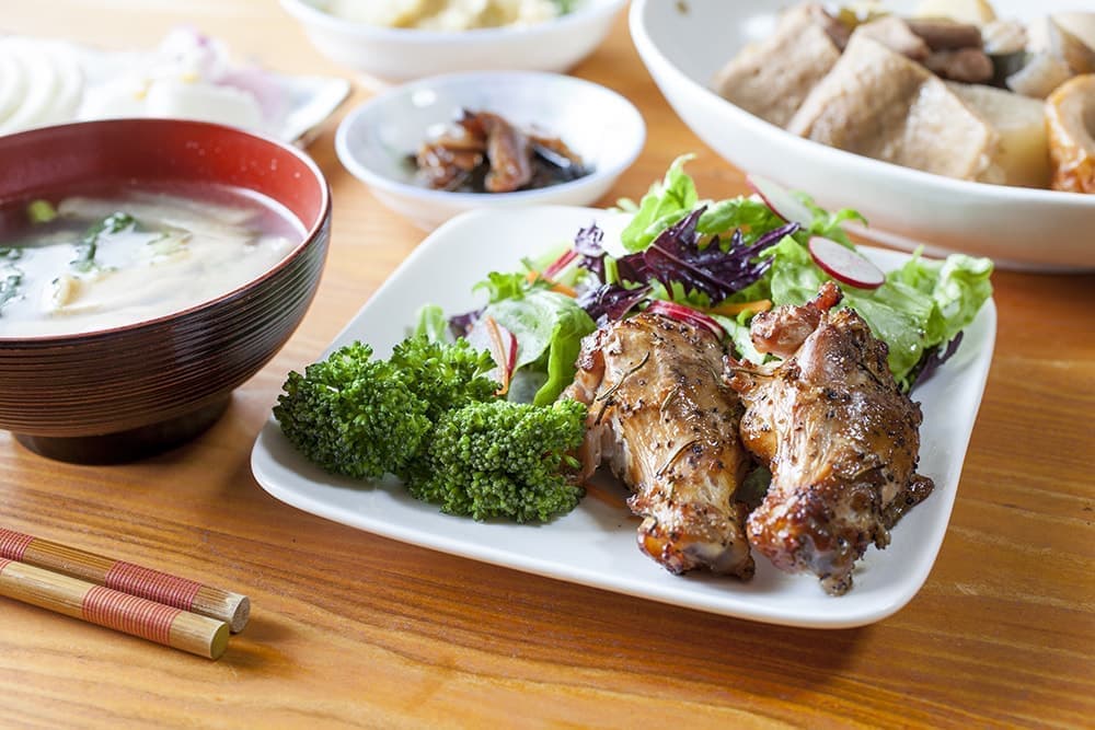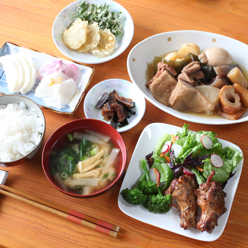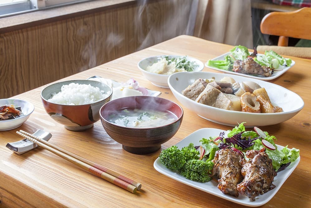 季節のとれたて無農薬野菜を使った家庭料理は絶品です!一緒に収穫体験をしてみてくださいね。